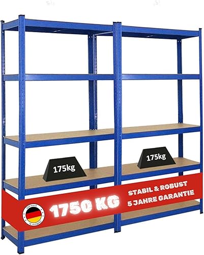 PROREGAL Mega Deal 2X Kellerregal Gorilla | HxBxT 180x90x40cm | Fachlast 175kg | Verzinkt | Garagenregal Schwerlastregal Werkstattregal Lagerregal Steckregal