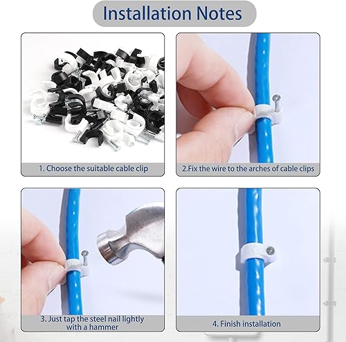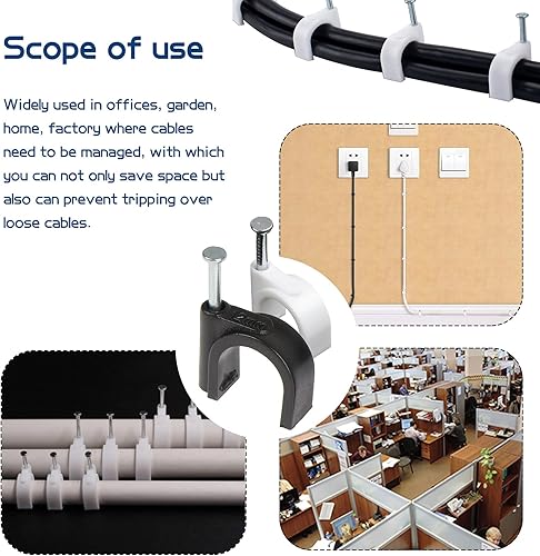 Fippy 600 Stücke Kabelschellen Nagelschellen 4mm 5mm 6mm 7mm 8mm 10mm 12mm Schwarz Weiß Kabel Nagel Befestigung Nagel für Netzwerkkabel mit tragbarer Box