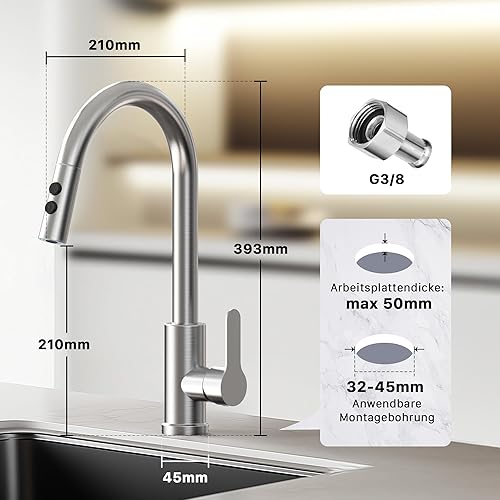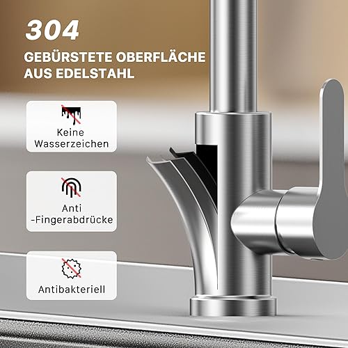 Wasserhahn Küche 360° Schwenkbar Spültischarmatur, Armatur Hochdruck Küchenarmatur mit Brause 2 Modi, Edelstahl Mischbatterie Gebürstet Für Küchen, Bad (Silbrig)