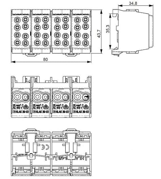 GRENDA-HAMMER Hauptleitungsklemme VDE 25/16qmm 4-polig für Hutschiene fingersicher zur Anwendung im Elektroverteiler und Zählerplatz