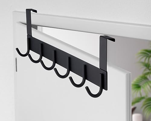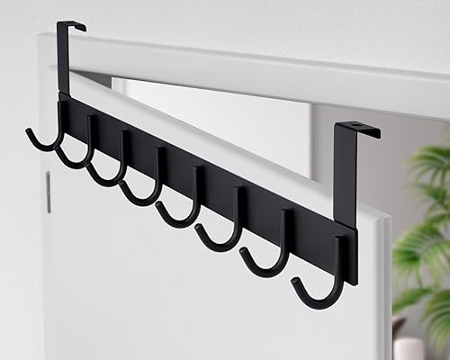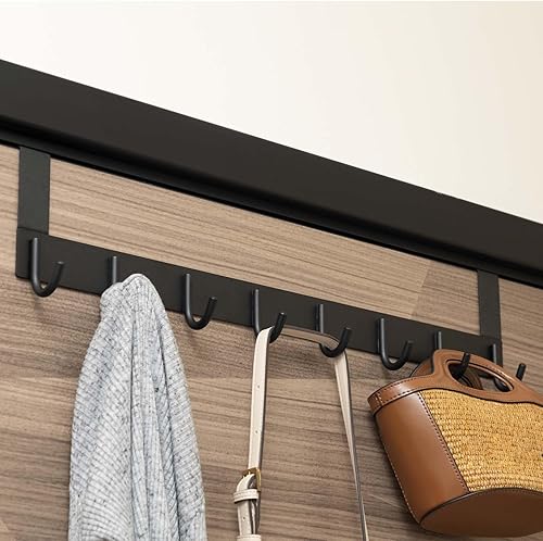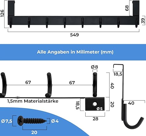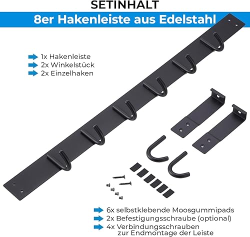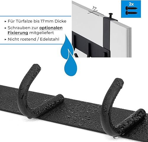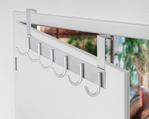 Stahlia Tür Hakenleiste Edelstahl V2A gebürstet Türgarderobe zum Einhängen mit 8 Türhaken Ohne Bohren Tür Garderobe Handtuchhalter Tür mit Falz bis 1,7cm für Badezimmertür, Küche, Schlafzimmer