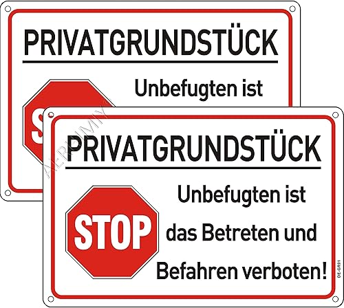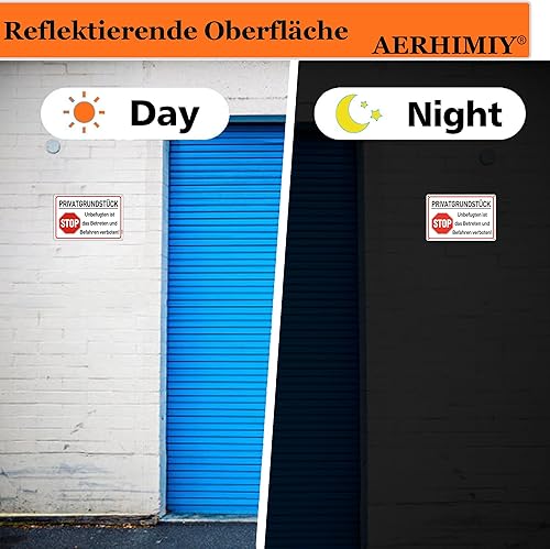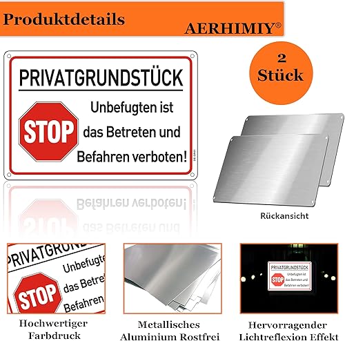 Privatgrundstück Schilder Metall Reflektierend 20x30 cm, Privatgrundstück Betreten und Befahren Verboten Schild Aluminium UV-beständig, Wasserfest, Rostfrei, mit Bohrlöcher