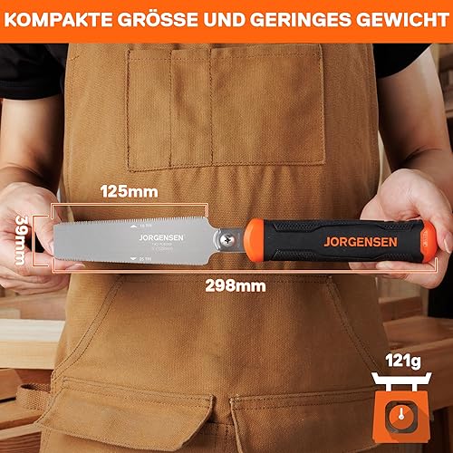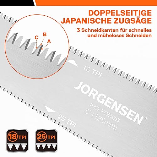 JORGENSEN 125mm Japansäge mit 0,4mm SK5 Klinge, Doppelte Kante japanische Handsäge 18TPI/25TPI, Profi Feinsäge Zugsäge für Holzbearbeitung Heimwerker Zimmermann