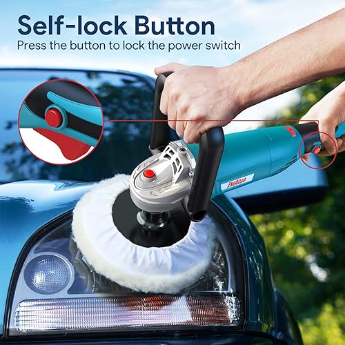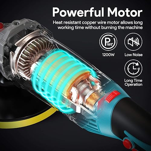 Poliermaschine, ENEACRO 1200W Polierer 6 Variable Geschwindigkeit 1000-3500U/min mit 150/180mm Polierteller, abnehmbarer D-Griff und Seitengriff, zum Polieren von Auto, Möbeln