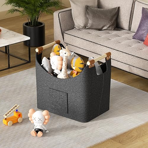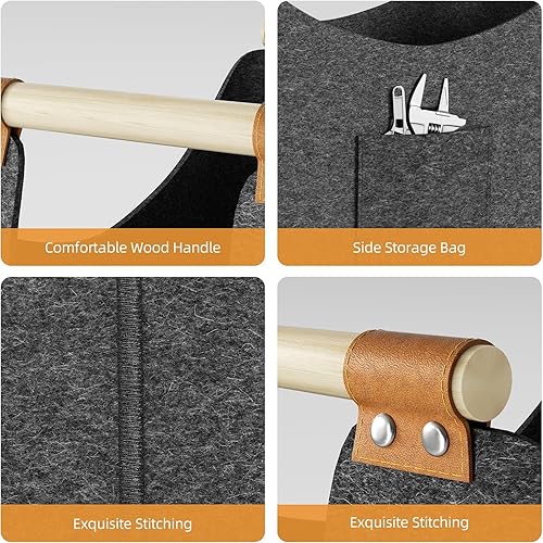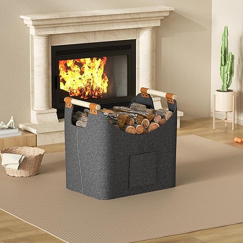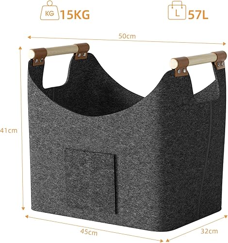 Holzkorb für Kaminholz-XXL Brennholzkorb aus extra dickem Filz mit verstärkten Holzgriffen, großer Kaminholzkorb für Holz, Zeitung oder Brennholz