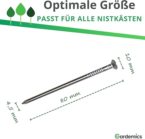 Gardemics Aluminium Nägel für Nistkästen & Futterhäuser - Perfekt für eine baumfreundliche und ungefährlicher Befestigung - Inkl. Gratis E-Book - 12 Stück 4,5x80 mm