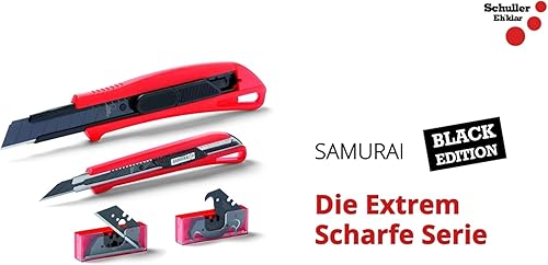 Samurai Black Trapez Trapezklingen 10 Stück im Sicherheitsspender für Cutter Teppichmesser schwarz sehr scharf und langlebig aus Japanstahl