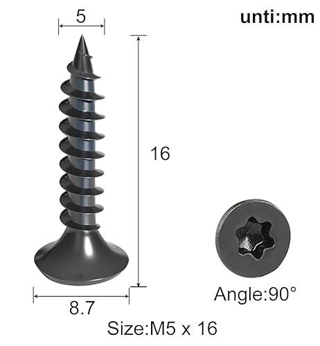Drenky Holzschrauben Torx Schwarz 50 Stück, M5 X 16 mm Schrauben SenkkopfAus Edelstahl Rostfrei A2 Vollgewinde Spanplattenschrauben Selbstschneidende Schrauben Universalschrauben Torx TX25