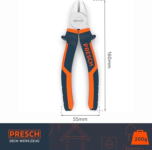 Presch Seitenschneider 160 mm gerade - Profi Kabelschneider gehärtet mit Mehrkomponenten Griff zum Draht trennen - Hochwertiger Drahtschneider