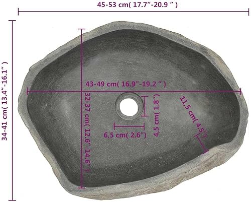 vidaXL Waschbecken Flußstein Naturstein 45-53cm Aufsatzwaschbecken Waschschale Steinbecken Steinwaschbecken Waschtisch Becken Badezimmer Badzubehör