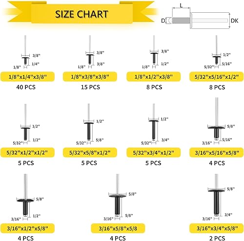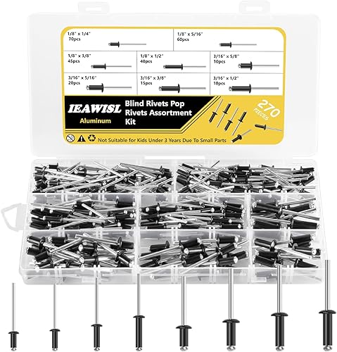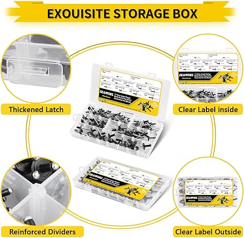 400 Stück Nieten Sortiment, 3mm/5mm Aluminium Blindnieten Set 8 Größen Silber popnieten mit Aufbewahrungsbox für Metall Holz Kunststoff