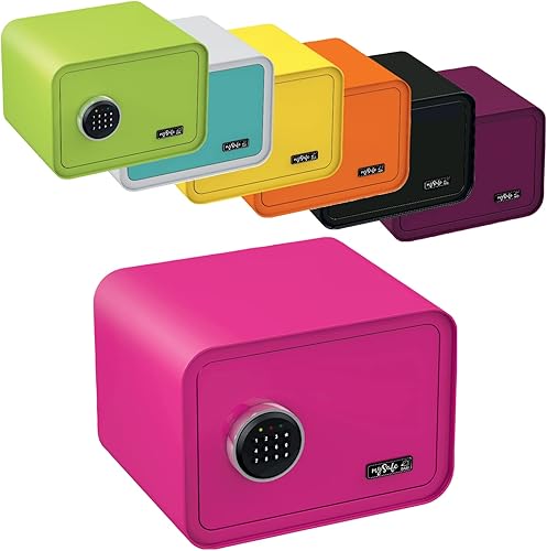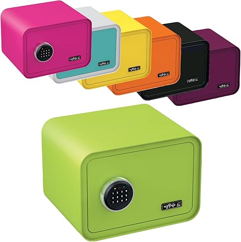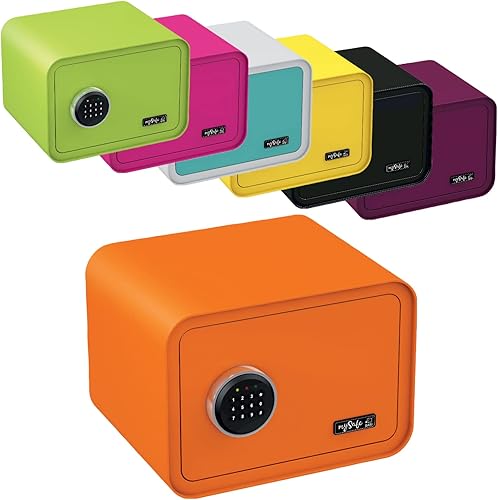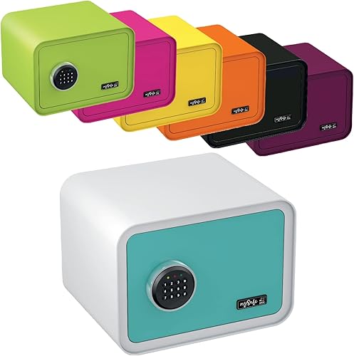 mySafe 350 Code | Elektronischer Tresor mit Zahlenschloss | 35x35x28cm | Design Safe | Möbeltresor | Stahltresor Doppelbolzenverriegelung | Alarm und Notschlüssel | Wand- Bodentresor | Farbe Blau-Weiß