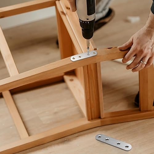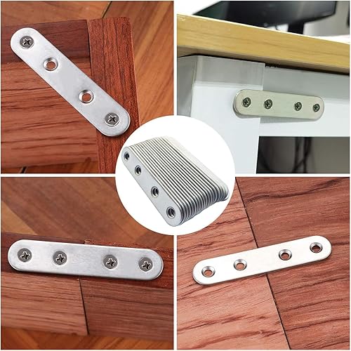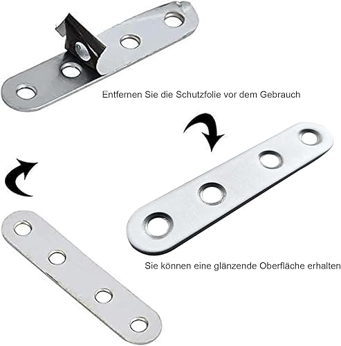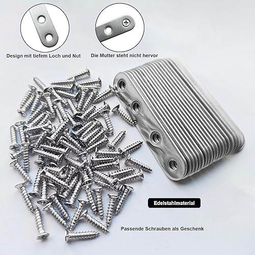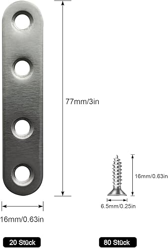 Flachverbinder,20 Stück 77 × 16 × 1.6mm Flachverbinder Edelstahl, Holzverbinder Lochplatte Metall,Edelstahl Silber Verbindungsplatte, Flachwinkel für Verbinder, Flacheisen Gelocht