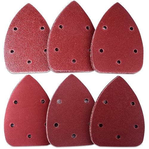 AUSTOR 60 stücke Klett-Schleifdreiecke Maus Detail Schleifpapier 5 Loch je 10 x 40 / 60 / 80 / 120 / 180 / 240 Körnung Für Dreieckschleifer Schleifer