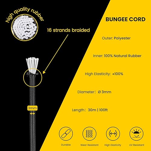 Brotree Gummiseil Expanderseil 4mm x 10m Schwarz - Planenseil Spanngummi Spannseil Wetterfest für Plane, Anhängerplane, Zelte, Camping, Netz