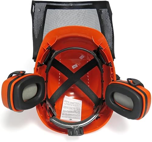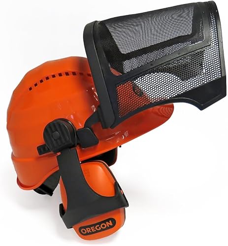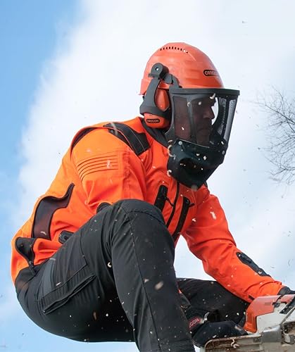 Oregon Waipoua Professioneller Kettensägen-Sicherheitshelm mit Gehörschutzmanschette und Netzvisier, Schlagfeste, Bequeme Schutzhelm-Sicherheitsausrüstung (562413), Einheitsgröße, Orange