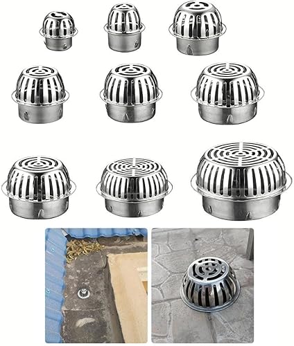 RANRAO Edelstahl Dachbodenablauf Anti-Verstopfung Abflussrohr Spüle Filter Outdoor Dach Anti-Blockierung Leitungskappe Runde Bodenablauf Dachrinnen Laubschutz (110 mm)