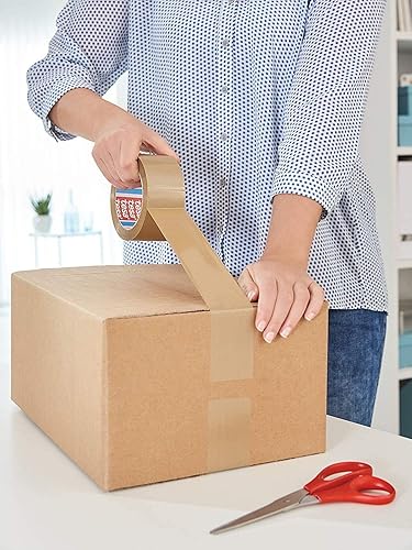 tesapack 64014 im 12er Pack - Geräuscharmes Paketklebeband zum Verpacken von Paketen und Versandschachteln - braun - 12 Rollen je 66 m