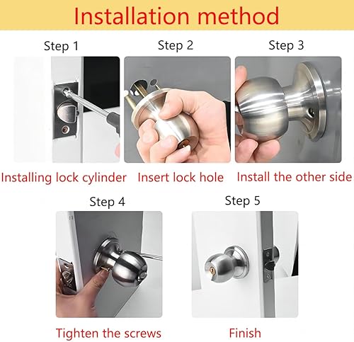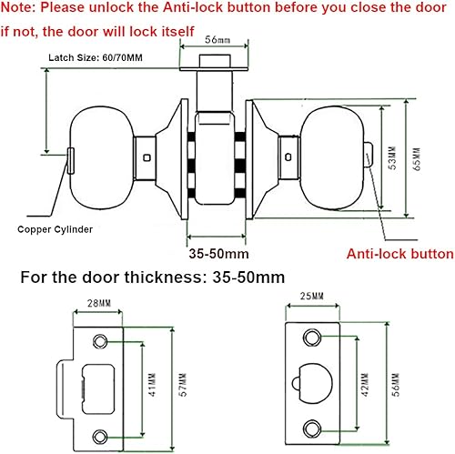 Qrity Türknauf mit Schloss/Schlüssel, Griff Keyed abschließbar Home Büro rund verriegelt Türknauf, Verriegelung 60 / 70mm