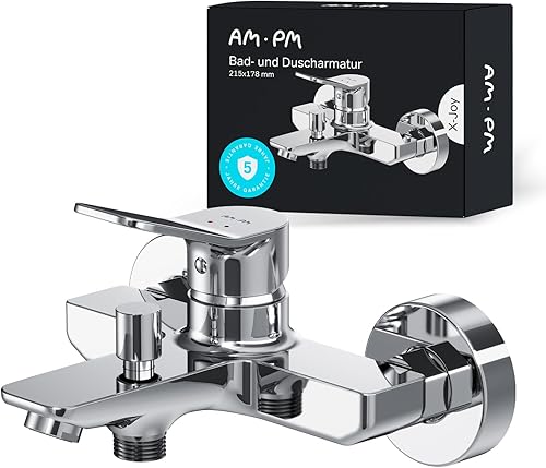 Badewannenarmatur mit Auslauf, Mischbatterie Badewanne, Brausebatterie Wanne, Einhand-Wannenbatterie für Badewanne und Dusche, Badezimmer Armatur, Chrom, AM.PM X-Joy S FXB10000