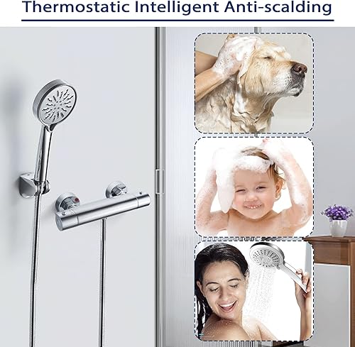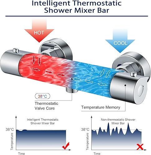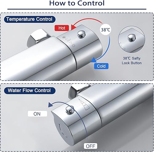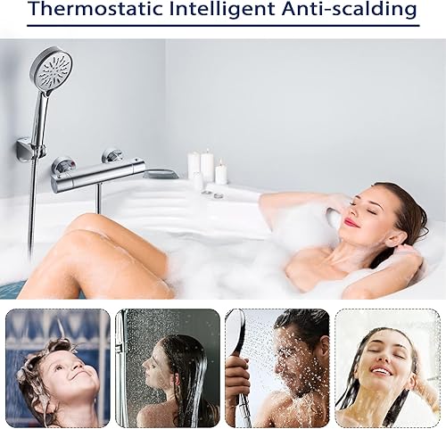 Solepearl Wasserfall Badewannenarmatur mit Thermostat 2 Auslässen Duscharmatur für Dusche und Badewanne, Chrom Mischbatterie Dusche Thermostat mit 38 °C Sicherheitstaste, Wannenarmatur 20-50℃