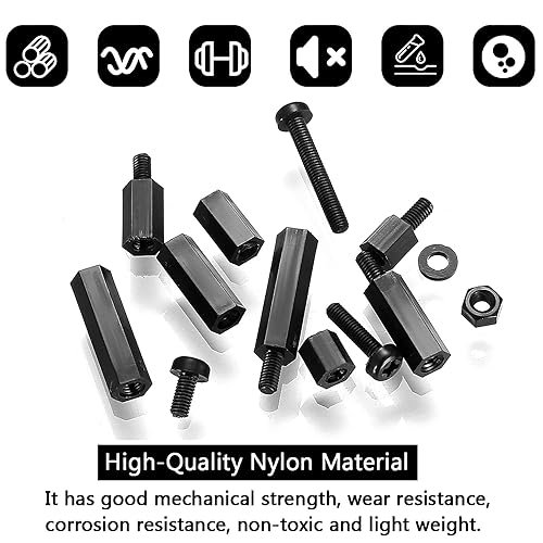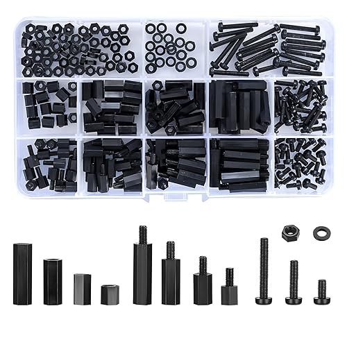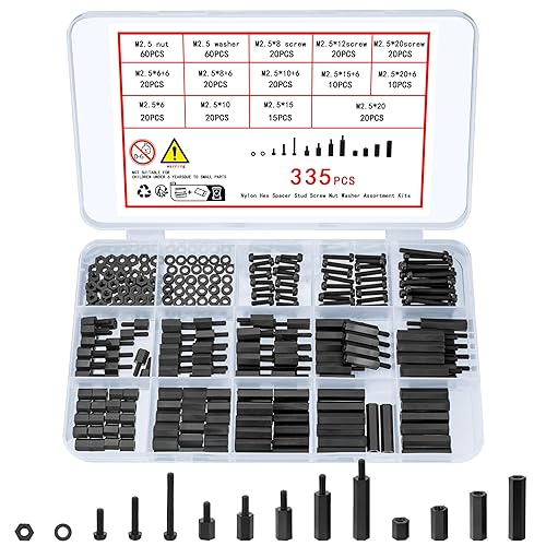 335 Stück M2,5 Nylon Schrauben Muttern Set, Schwarz Nylon Abstandshalter Schraubenmuttern, Männlichen Weiblichen PCB Platinen Abstandshalter Kunststoff Kreuzschlitzschrauben Sortiment Kit