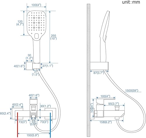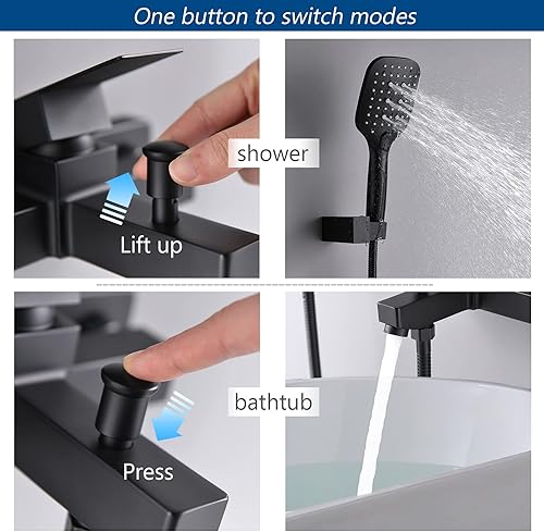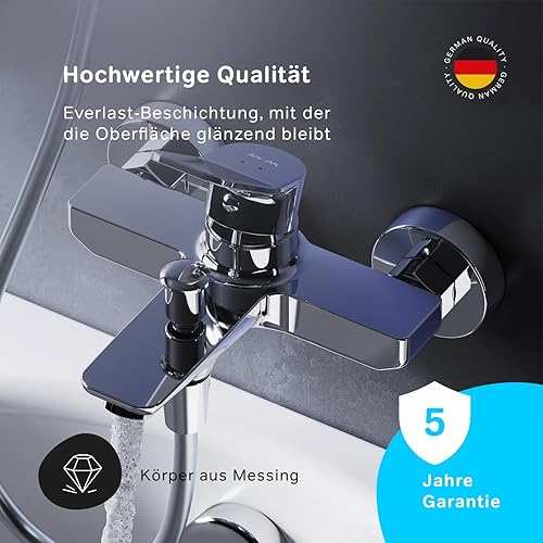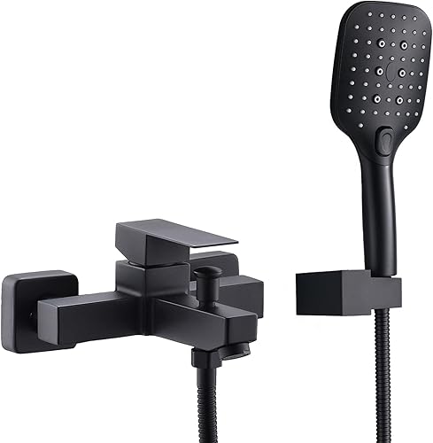 Schwarz Badewanne Wasserhahn,Badewannenarmatur mit Handbrause Wandmontage Badewannenhahn für Badezimmer Bad SHANFO TB01E
