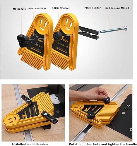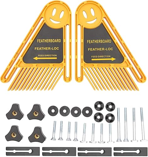 Doppel Federbrettern, Tischsägen-Federbrett- Feder Loc Board Set, Featherboard Tischsäge Push Block für Tischsägen/Bandsägen/Frästische/Zäune Werkzeuge, 21,0 * 16,5 * 3,5 cm, Gelb