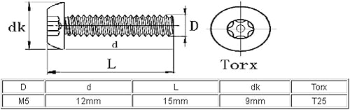 sourcing map 50 Stück M5x12mm 304 Edelstahl Torx Schrauben Sicherheit Tamper Proof Schrauben DE de