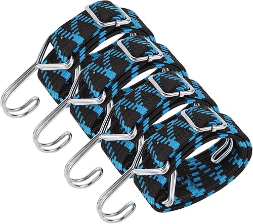 Spanngummi mit Haken,4er Expander Spanngurte mit Haken Verstellbar Gepäckspanner Breit Gummispanner mit Haken 1M für Sackkarre Gepäckträger Fahrrad Motorrad Camping Blau.