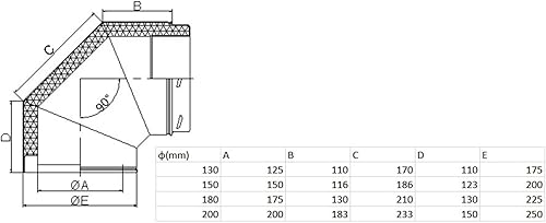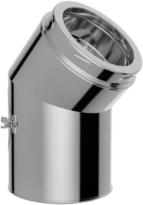 Edelstahl Versatzbogen mit Öffnung - Ofenknie Bogen für Schornstein in allen Durchmessern und Winkeln (Ø 150mm, Winkel 45°m.öffnung)