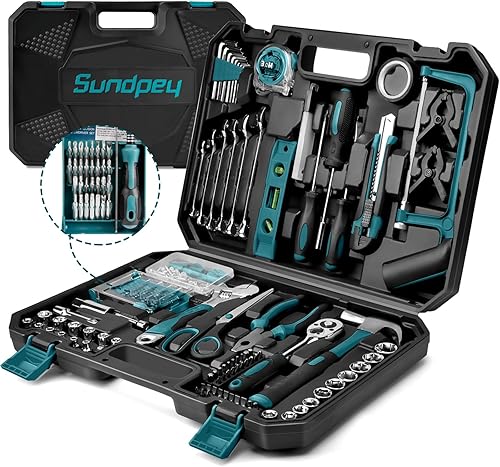 Sundpey 257 tlg Werkzeugkoffer Gefüllt - Universelles Handwerkzeug-Set mit Ratschen & Steckschlüssel, Tragbarer Kompletter Werkzeugkasten in Blau