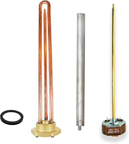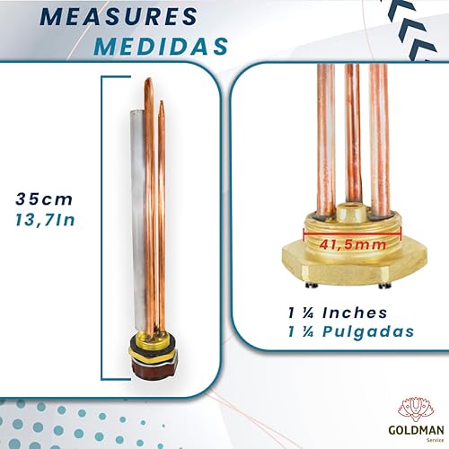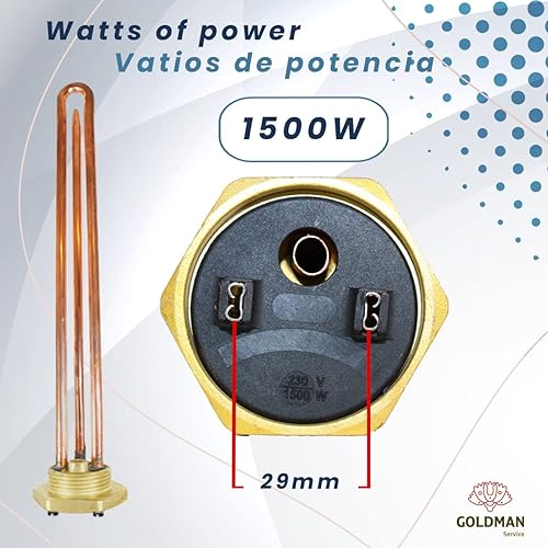 GOLDMAN SERVICE Elektrischer Thermo-Widerstandsset, Monoblock, 2000 W, Gewinde, 1 ¼ Zoll, Thermostat, Magnesiumanode, Dichtung, Ersatz für Warmwasserbereiter, Solarspeicher, Kessel