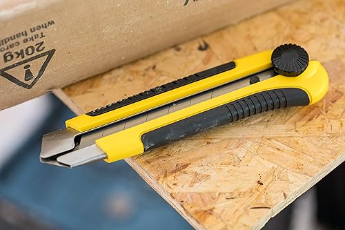 Stanley Cutter-Messer 0-10-425 (25mm Klingenbreite, 180mm Länge, Kunststoff, Fixierung der Klinge durch Schraube, vielzeitiges Messer mit Abbrechklinge für präzise Schnitte in Papier, Pappe, Folie)