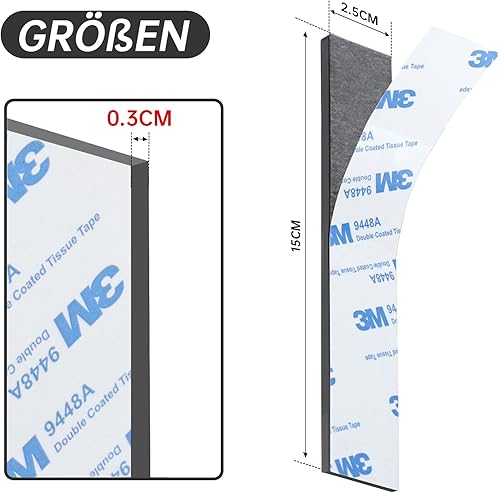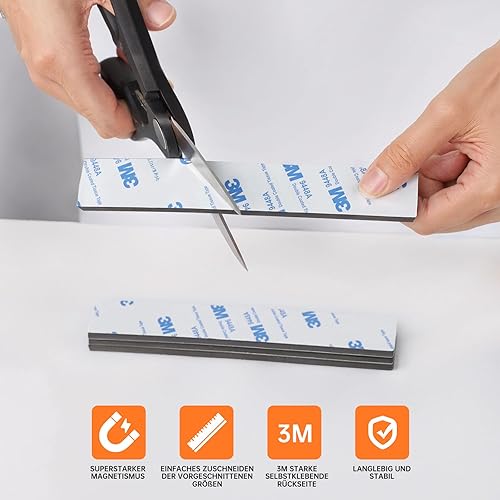 FRETONBA Magnetstreifen Selbstklebend Stark, 3mm Zuschneidbares Magnetblech, 8 Stück Magnetklebeband, Magnete zum Kleben Stark 3M Haftende Rückseite, Magnetband für Fliegengitter, Klebemagnete