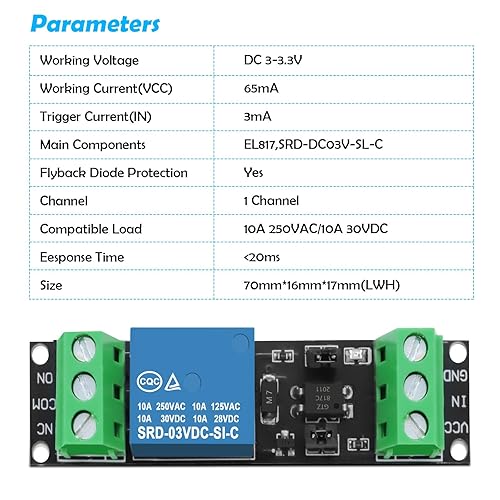 3V 1-Kanal Relais Optokoppler Modul,Relais Opto-Isolation-High-Level-Trigger Modul für Arduino Relais,Relais 3V Modul für IOT ESP8266-Entwicklungsboard
