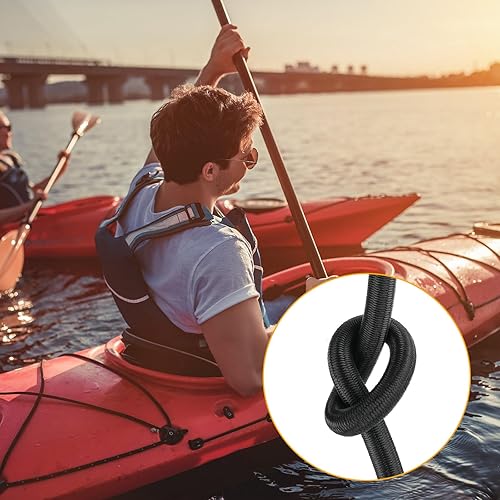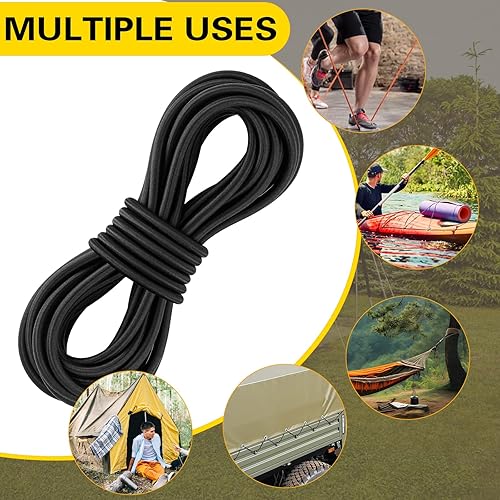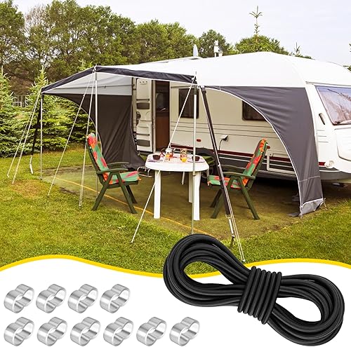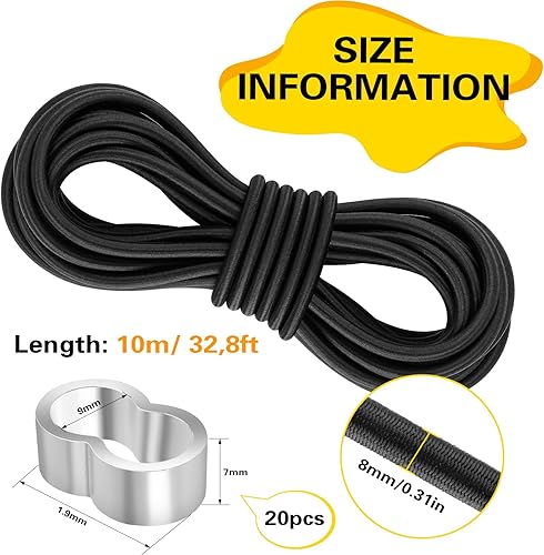 HGRGHH Gummiseil Expanderseil 8mm 10m Schwarz, Elasten Gummikordel mit 20 M9 Aluminium Crimpschlaufe, Gummischnur für Anhängerplane, DIY Basteln Nähen, Gepäck, Camping, Segeln Planenseil