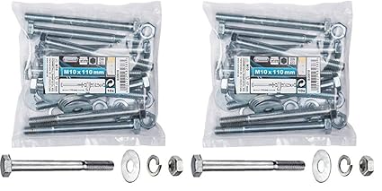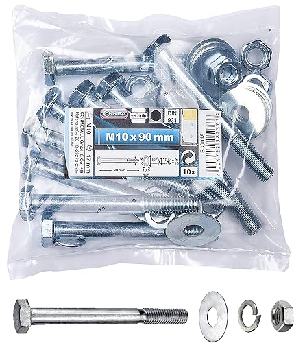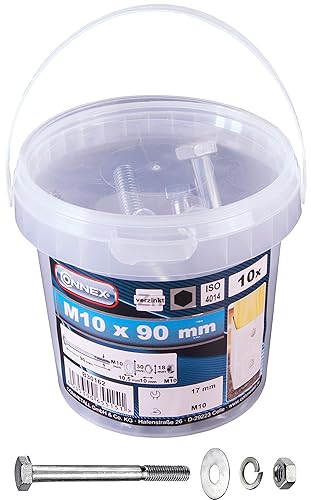 Connex Sechskantschrauben M10 x 110 mm - 10 Stück - Außensechskant-Antrieb - Verzinkt - Für sämtliche Konstruktionen - Inkl. Unterlegscheiben, Federringe & Muttern / Schrauben-Sortiment / B30019