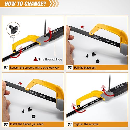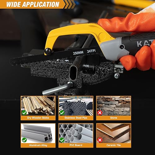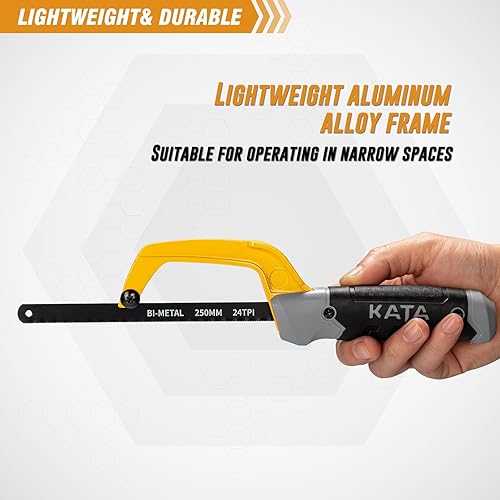 KATA Kompakte Mini-Handsäge mit Aluminiumrahmen, 25,4 cm, kleine Handsäge, Bügelsäge für Holz und Metall, 2 extra flexible Bimetall-HSS-Klingen im Lieferumfang enthalten