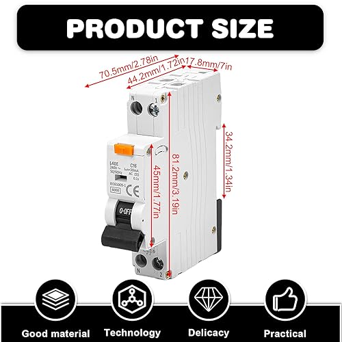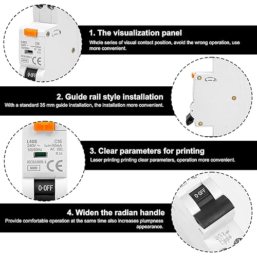 Asfrode FI-Schutzschalter, C16A 1P+N 6kA FI/LS-Schalter 230V 30mA Sicherungsautomat 2 polig Fehlerstromschutzschalter FI-Schalter mit RCBO Typ A