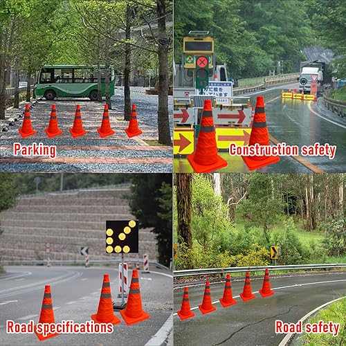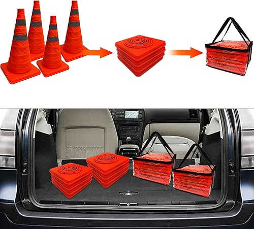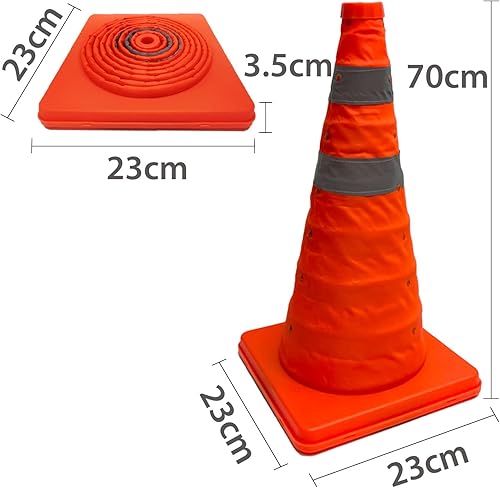 BotaBay 4PCS Faltbare Verkehrskegel 70cm Warnkegel Sicherheit Straße Parkplatz Kegel Gewichtete Kegel BAU Kegel Fluoreszierende Orange Reflektierende Silber Streifen Kragen mit PVC Handtasche