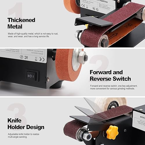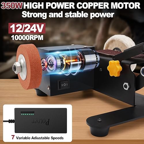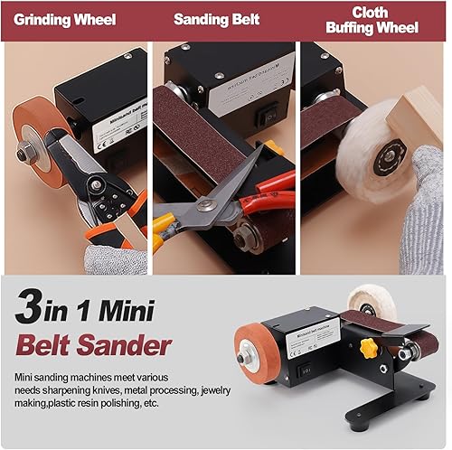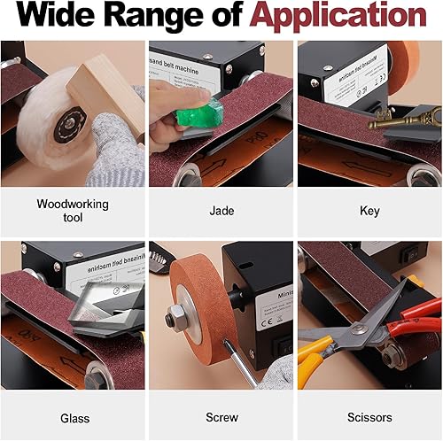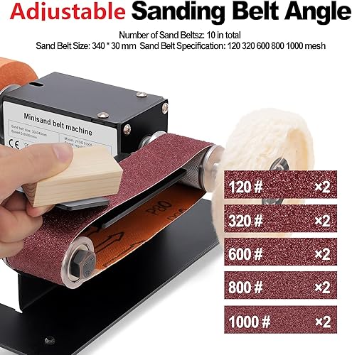 Yofuly Stand Bandschleifer, 350W Stationäre Schleifer Einstellbarer Winkel Mikro Elektrischer Band Schleifmaschine mit 10-Teiligen Schleifbändern, 1* Schleifscheiben, 1* Polierscheiben