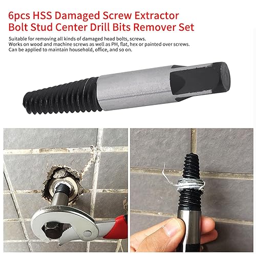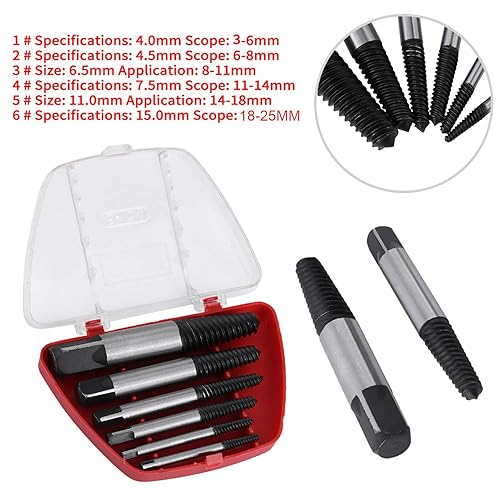 Oumefar Defekter Schraubenextraktor 6-teiliges GCR15-Werkzeug Stahl beschädigter Bolzenbolzen-Schraubenzieher-Extraktor-Entferner-Set Einfaches Werkzeug zum Entfernen