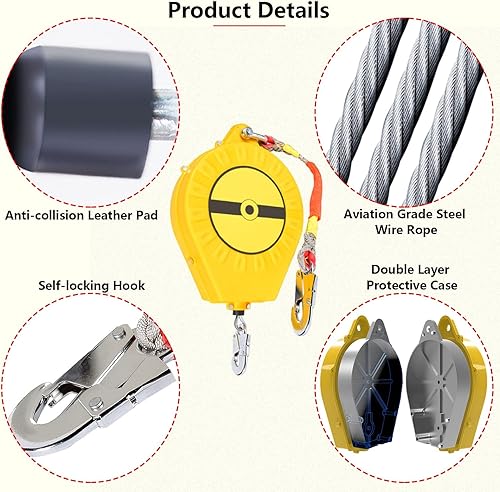 BOVDC Höhensicherungsgerät Absturzsicherung 3-20m, Absturzsicherung Einziehbar Grün/Gelb, Absturzsicherung Dach mit CE-Zertifikat, Klettern Sicherungsgerät Einziehbar(Grün, 5m)