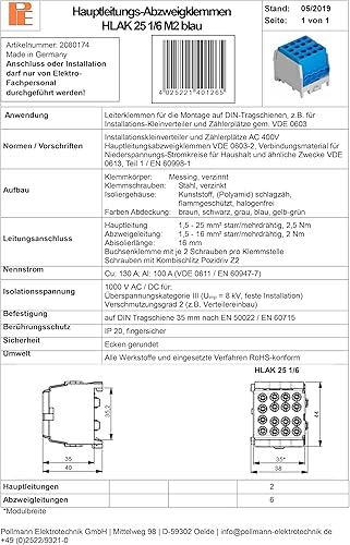 Pollmann Abzweigklemme HLAK 25 1/6 M2 blau