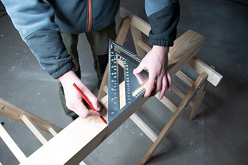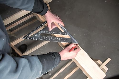 Mivos Schreinerwinkel mit 350 mm Federstahlklinge und Aluminiumgriff - Anschlagwinkel mit Skala Beidseitig - Universalwinkel 90 Grad für Schreiner- und Schlosserarbeiten