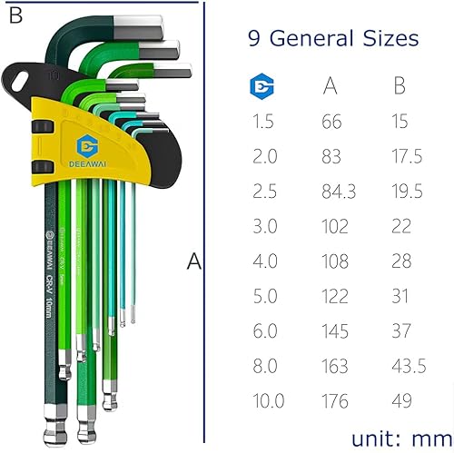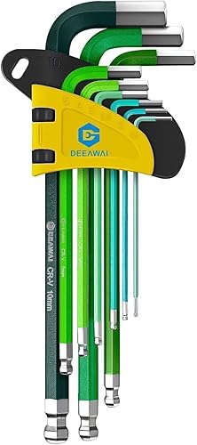 DeeAWai Innensechskant Satz 13 tlg, metrisch, HX | DIY Innensechskantschlüssel 1,27 bis 10 mm Cr-V-Stahl Winkelschlüssel Set für Reparatur von mechanischer Geräte Fahrräder, Flachkopf & Rundkopf