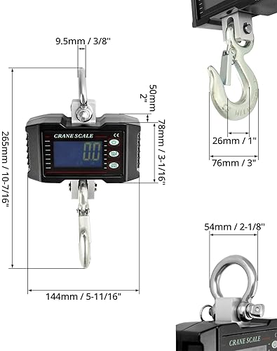 QWORK® Digitale Hängewaage, 1000 kg, Digitale Aluminium-Kranwaage, Zum Wharf-Wiegen, Stahlrohstoffe, Angeln