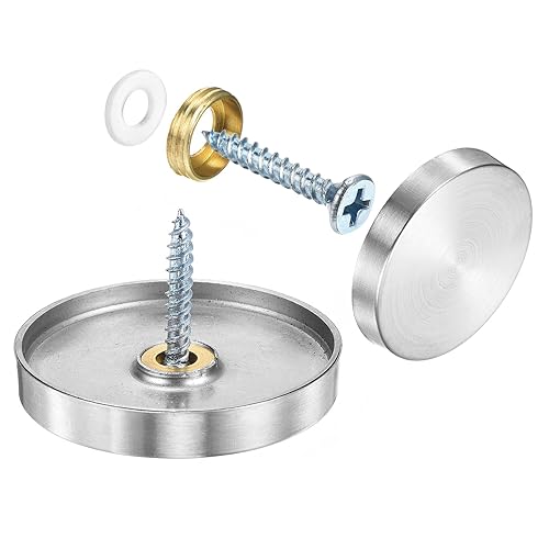 QUARKZMAN 8 Stück Spiegelschrauben, Edelstahl Zierschrauben dekorative Abdeckkappen Nägel, Panelschrauben für Schild Hardware Bau, 40mm Durchmesser, Silber