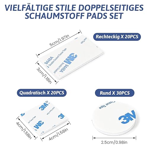 Molkor Doppelseitiges Klebeband,Klebepads Doppelseitiges Extra Stark,70 Stück Doppelseitiges Schaumstoff Pads,Schwarzes Selbstklebendes Klebeband Inklusive Quadratisch Rund und Rechteckig (01)